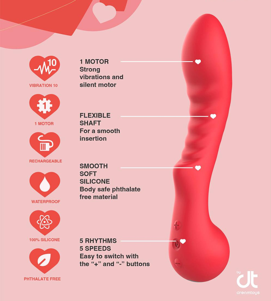 Upravljanje s 5 ritmova vibracija i 5 brzina jednostavno je s 3 gumba: gumbom za uključivanje/isključivanje, gornjim i donjim gumbom za promjenu vibracija. Vodootporan IPX6. Nakon potpunog punjenja USB kabelom (uključen), vibrator je spreman za još 120 minuta rada.
