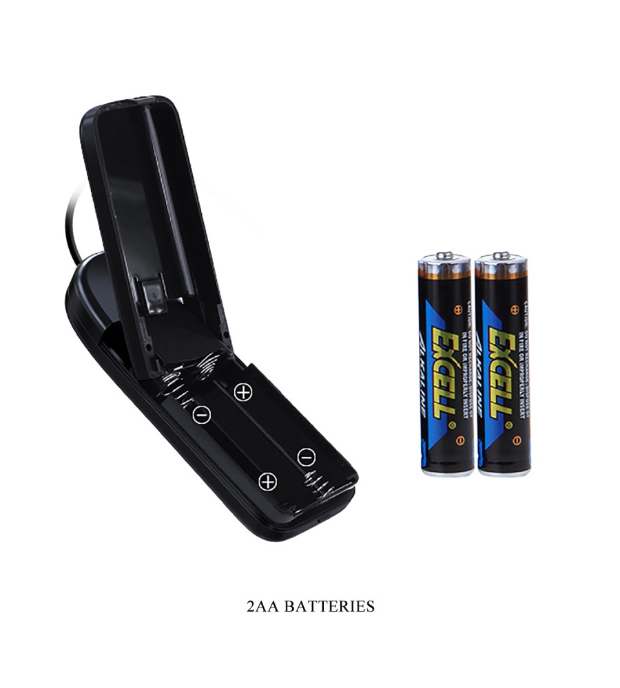 Ima žični daljinski upravljač u koji se umeću 2xAA baterije i pomoću njega pojačavate ili smanjujete intenzitet vibracija.