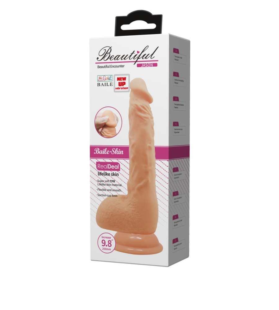 Baile Beautiful Jason 9.8” Beige – vibrirajući dildo, TPR, 25 cm
