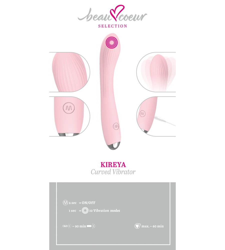 beau coeur KIREYA Pink je elegantan silikonski vibrator ružičaste boje. Lako se umeće i bez napora klizi do G-točke ili prostate kako bi pružio ciljanu stimulaciju svojom vibrirajućom glavom. Tanak je i također udobno leži u dlanu prilikom istraživanja vanjskih erogenih zona.