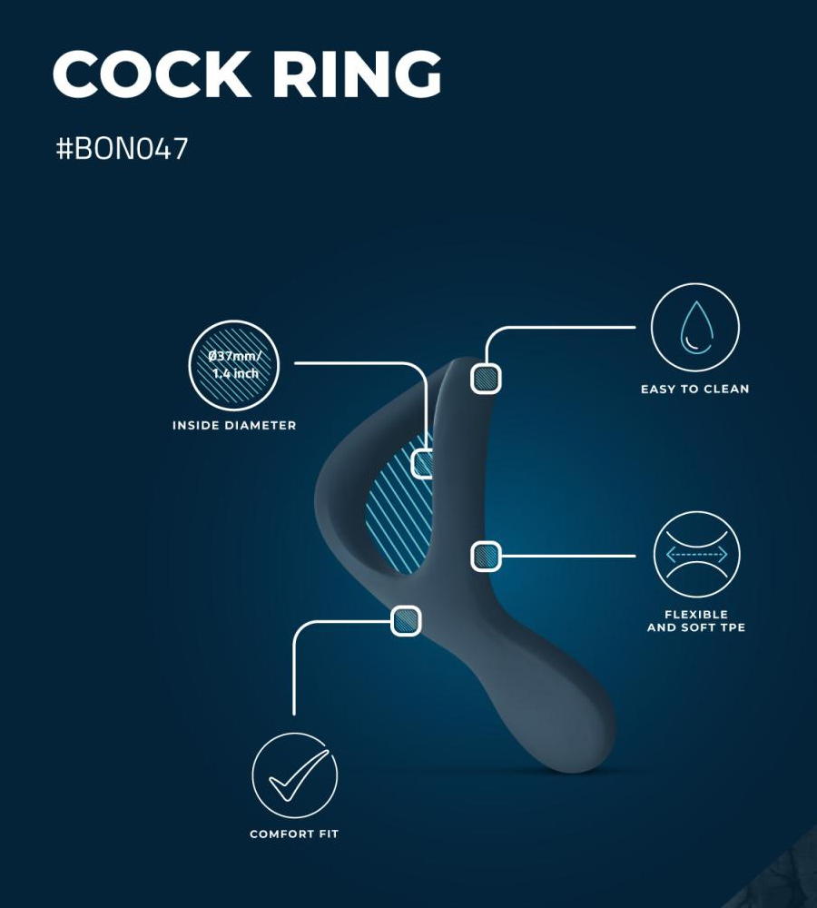 Boners Cockring je silikonski penis prsten tamnoplave boje.