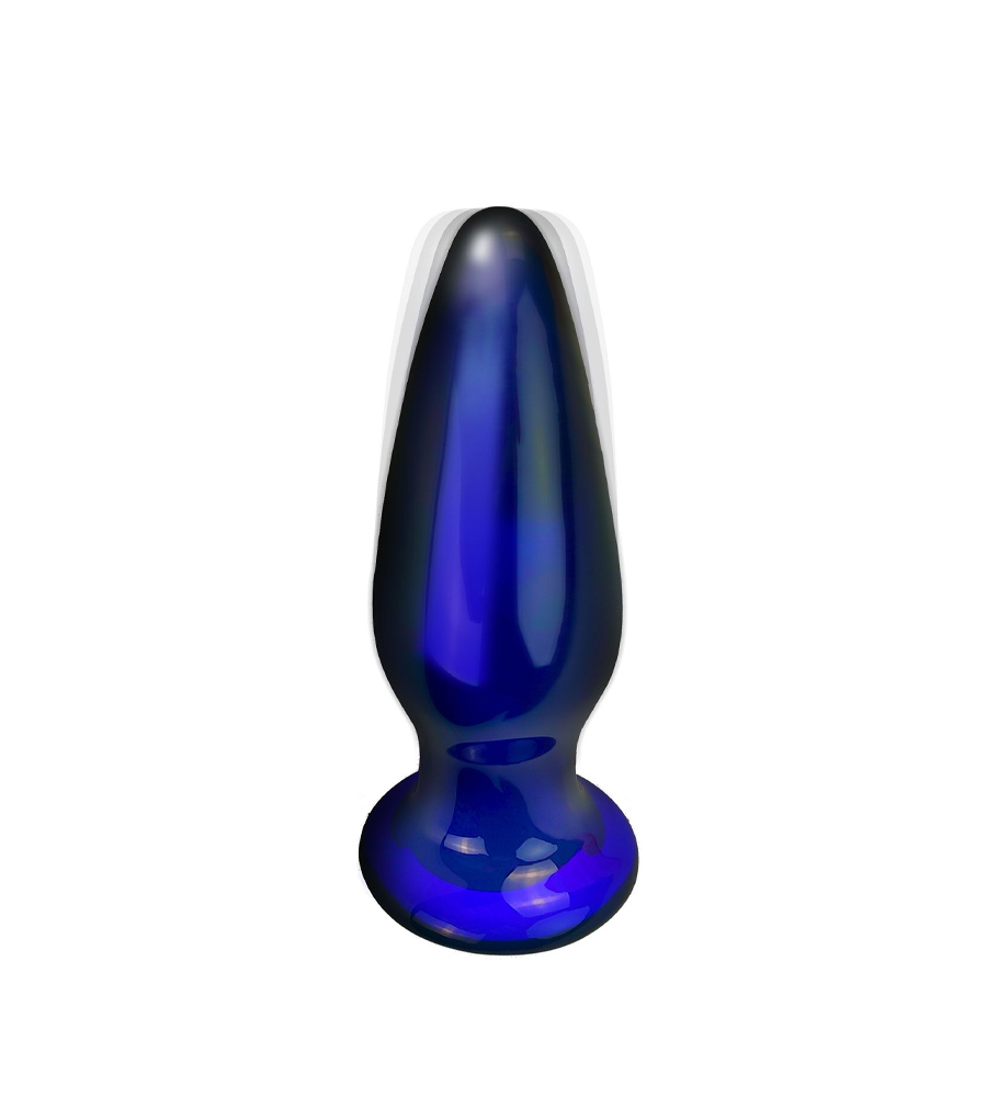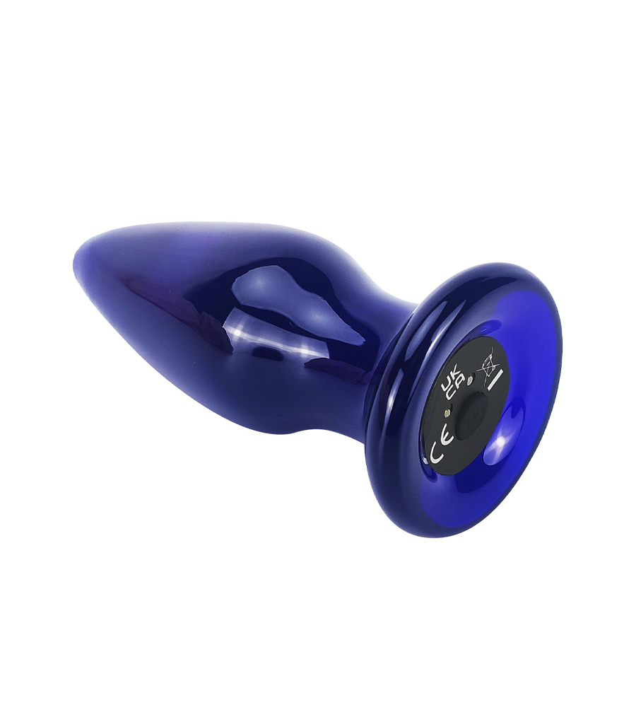 Buttocks Shining Vibrating Glass Plug je plavi analni plug izrađen od borosilikatnog stakla.
