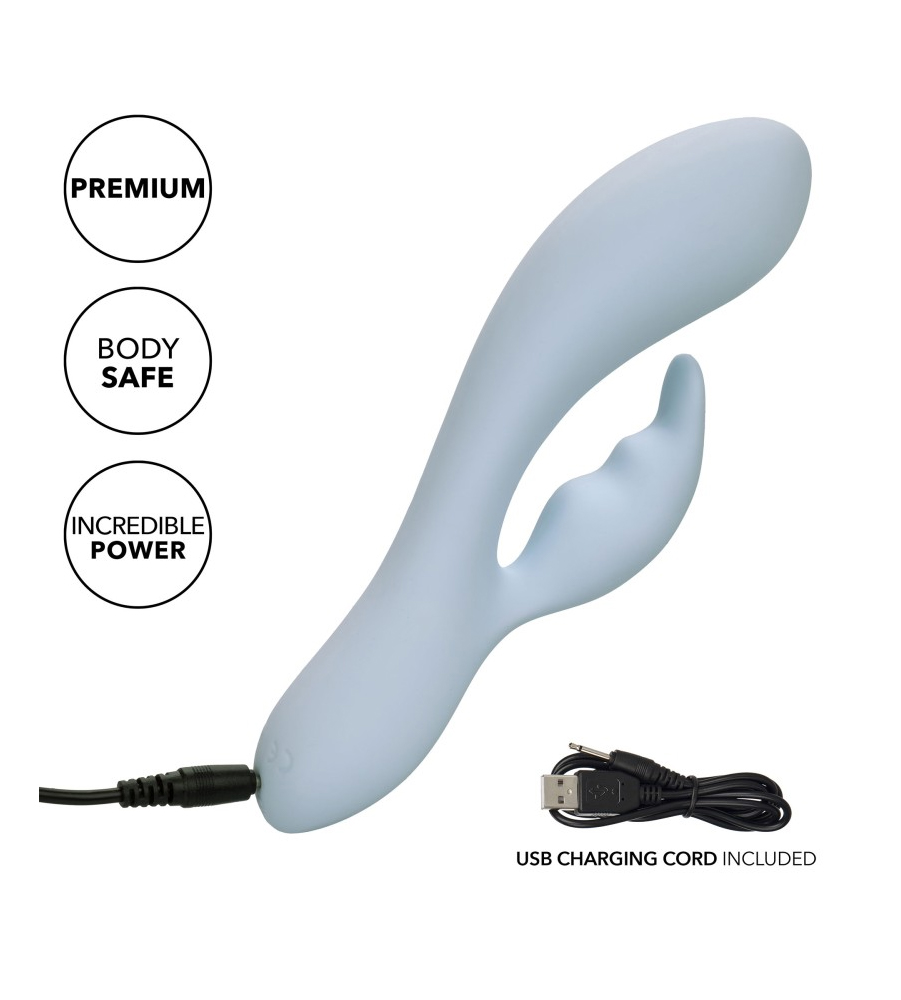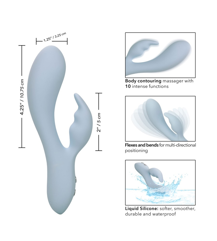 Dosegnite nove visine užitka s fantastično fleksibilnim Calexotics Contour Kali silikonskim rabbit vibratorom plave boje.