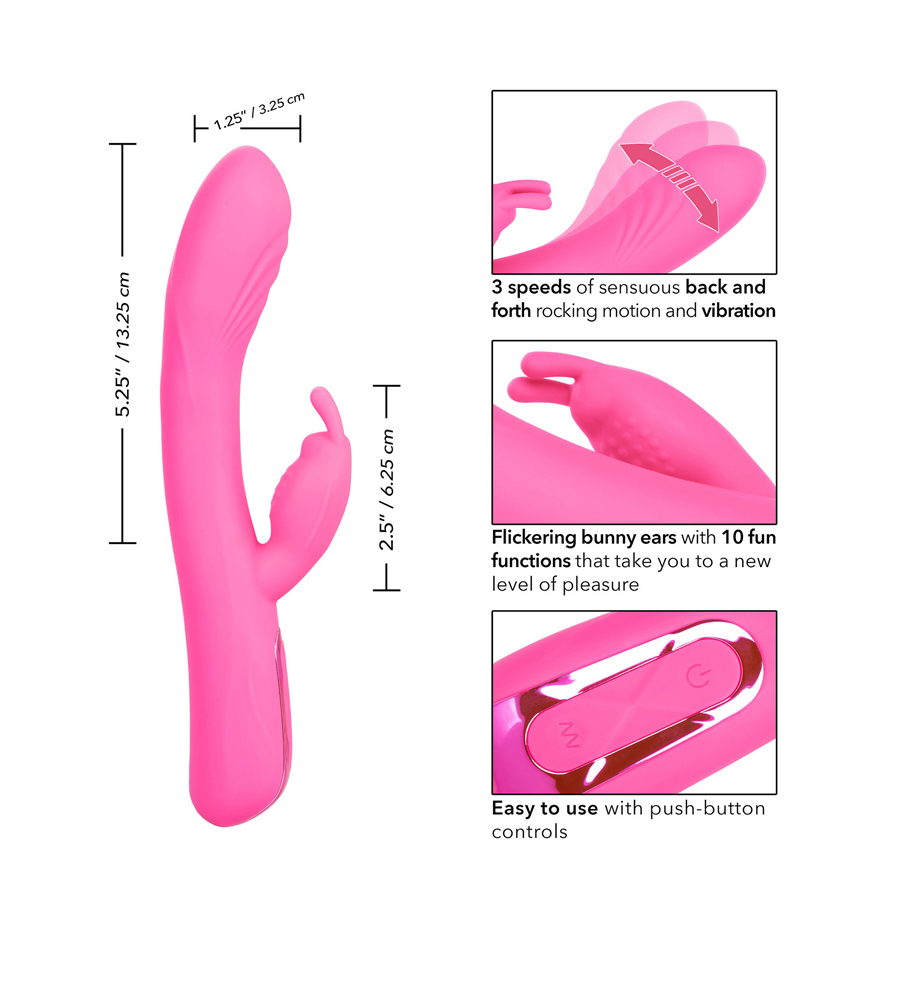 Oživite uzbudljive fantazije s očaravajućim CalExotics Elite Rocking Rabbit vibratorom.