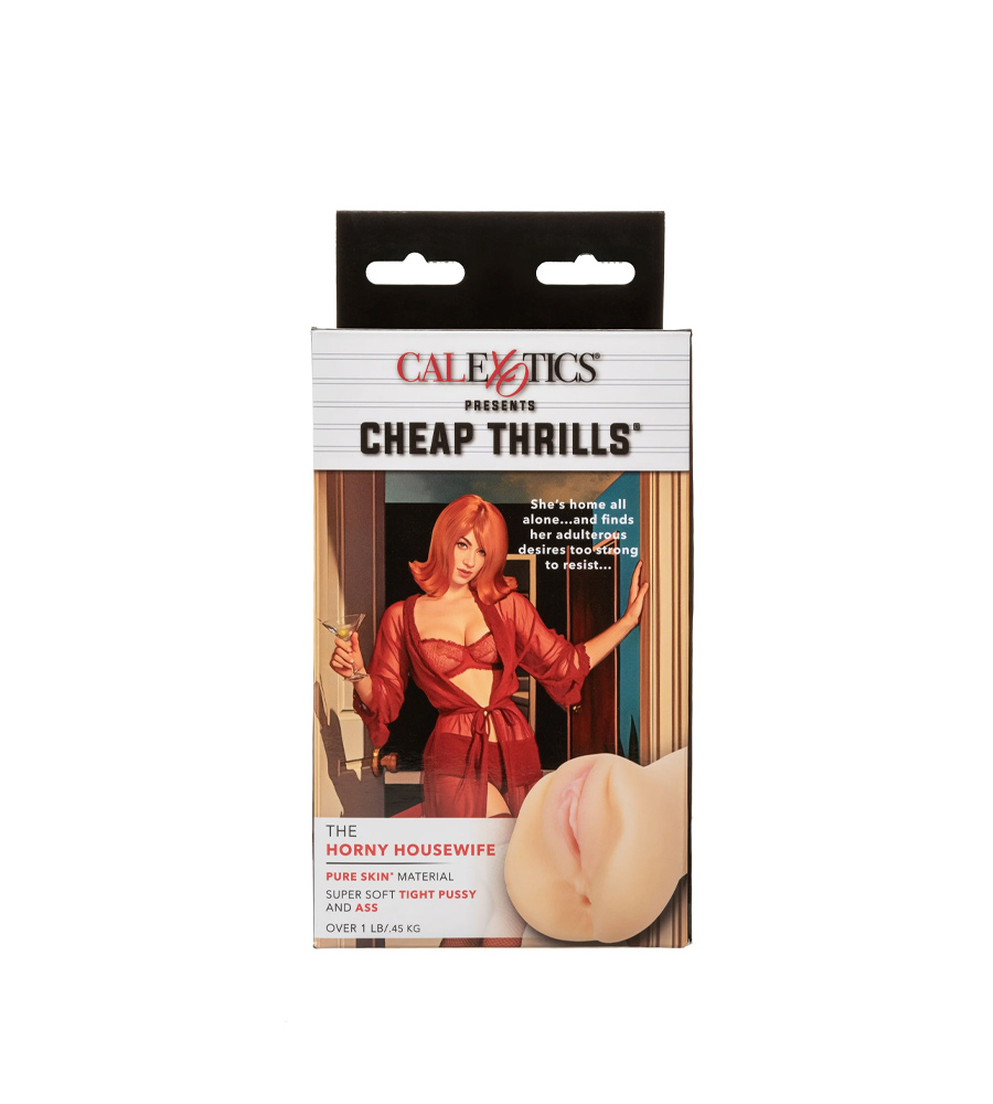 Cheap Thrills The Horny Housewife je realističan masturbator u bež boji, sa vaginalnim i analnim otvorom. Napravljen je od PureSkin-a, senzacionalnog materijala izuzetne mekoće poput prave kože.