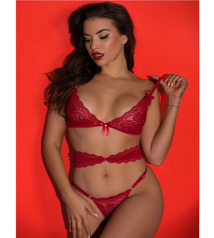 Daring Lace Dreams 3PC Lingerie Set – grudnjak, čipkasti remen i gaćice