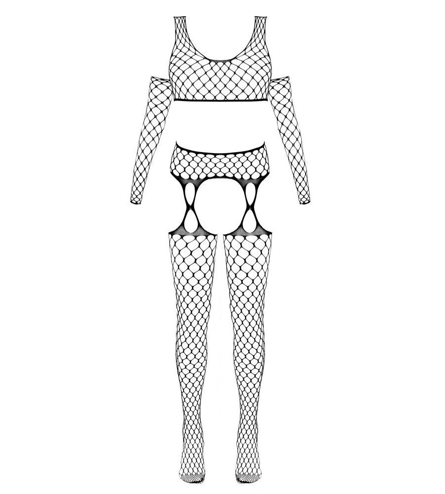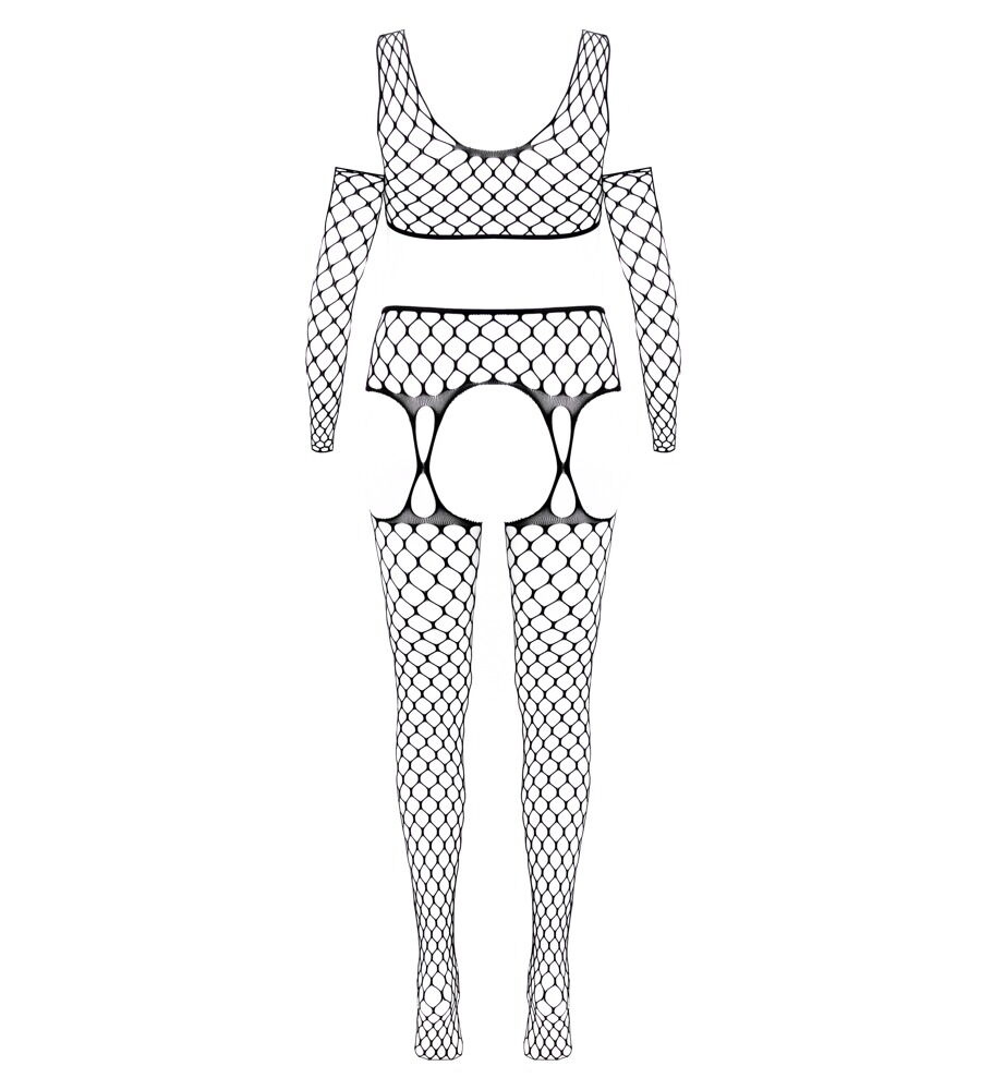 Fantasy by Cottelli 3-piece Net Set – mrežasti top, hulahopke s otvorom i rukavi