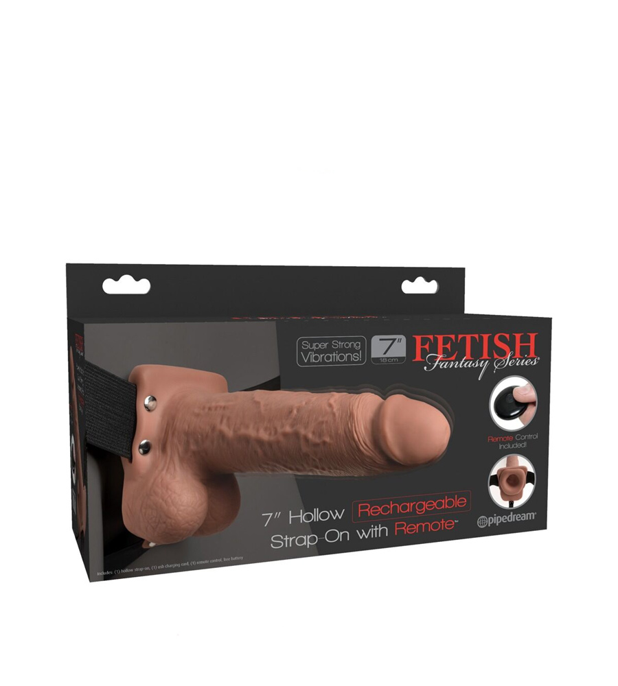 Budite uvijek spremni za akciju s Fetish Fantasy 7″ Hollow Strap-On with Remote vibrirajućim strap-on navlakom za penis!