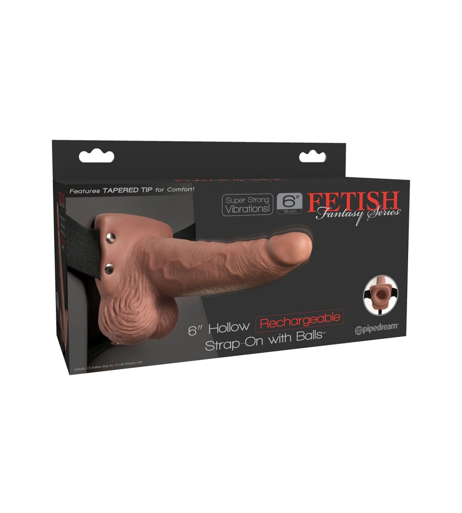 Fetish Fantasy Hollow Rechargeable Strap On 6″ je strap on sa šupljinom i 10 vibrirajućih funkcija, namijenjen muškarcima.