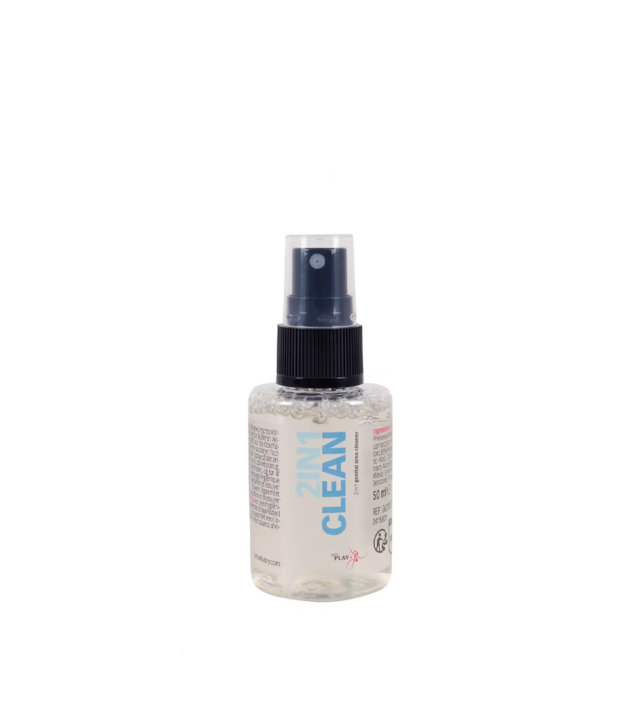 Just Play 2 in 1 Clean 50 ml je sredstvo za nježno čišćenje intimnog područja i seksualnih igračaka.