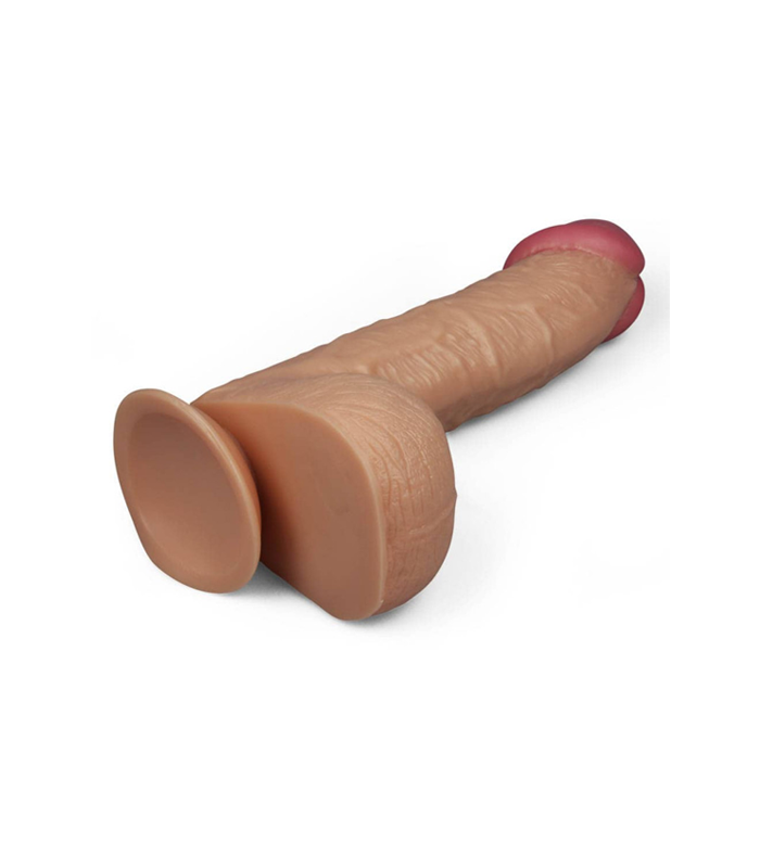 Izraženih vena, istaknutog glavića i s testisima, vrlo savitljiv i realističan. Na dnu se nalazi vakumsko postolje za čvrsto prianjanje na površine kako bi ga koristili bez ruku.