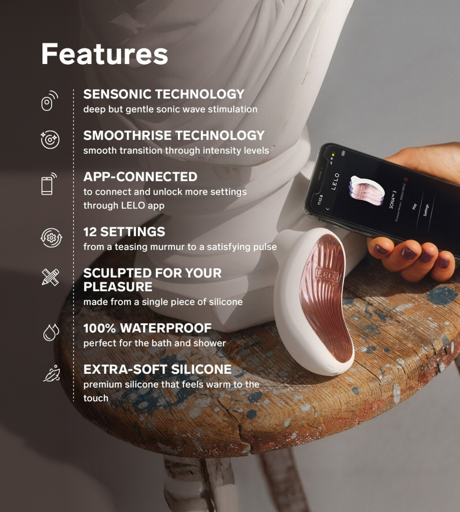 Za razliku od klasičnih vibracija, LELO-ova patentirana SenSonic™ tehnologija pruža višerazinsku stimulaciju emitiranjem nježnih soničnih valova koji se šire iz otvora uređaja prema unutarnjim dijelovima klitorisa. Na taj način stimulacija je raspršenija i dublja, omogućujući intenzivnije doživljaje i potencijalno više orgazama u kraćem vremenu, uz manji izravni pritisak.