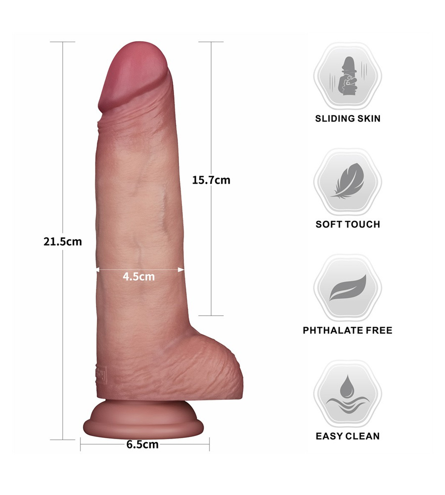 Lovetoy Sliding Skin Pro II Silicone Dong 8.5” je realistični dildo s testisima.