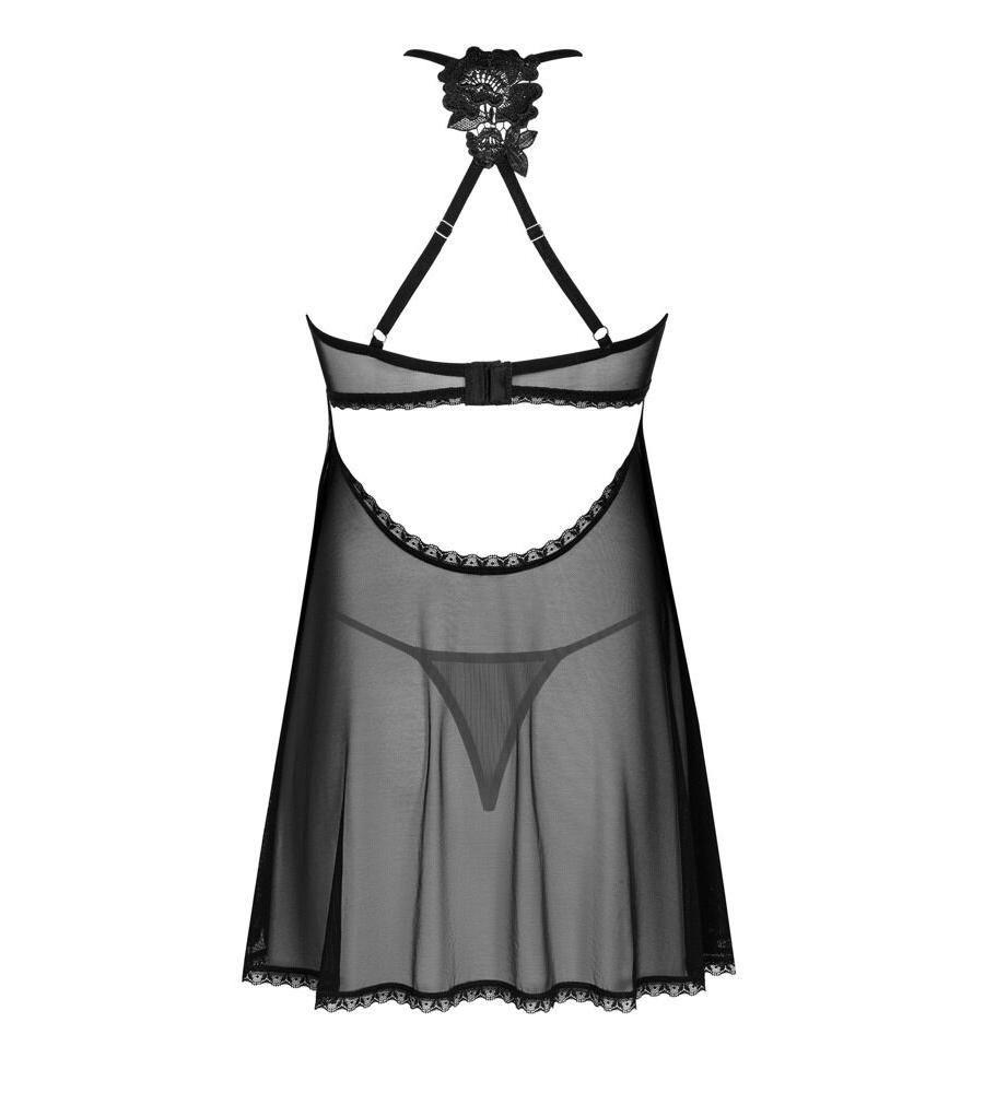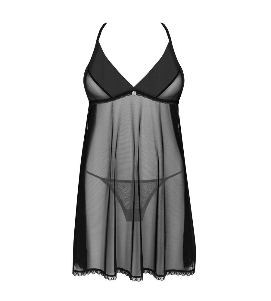 Babydoll je lepšav, mekan i rastezljiv za visoku razinu udobnosti. Izrađen od providnog crnog tila, te ima ukrasni privjesak u dubokom dekolteu.