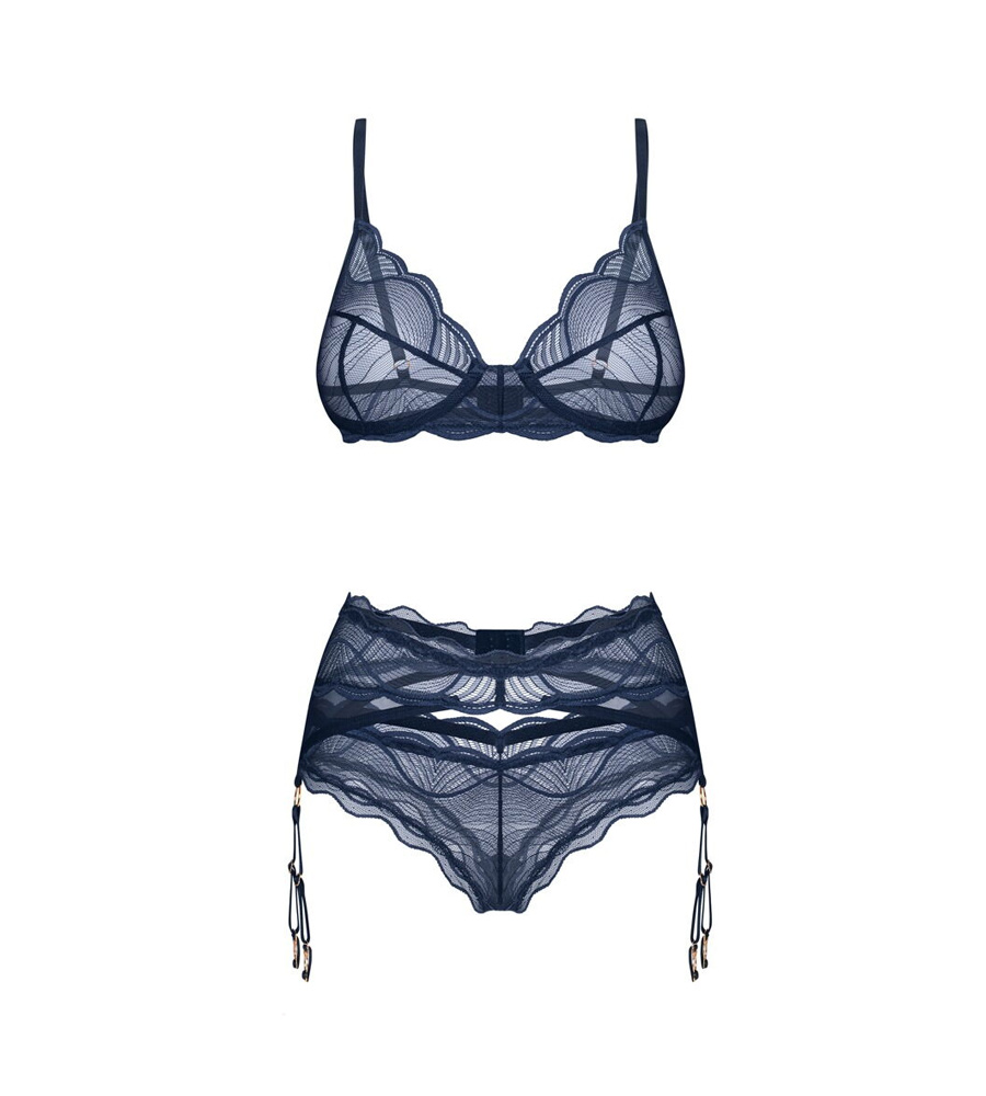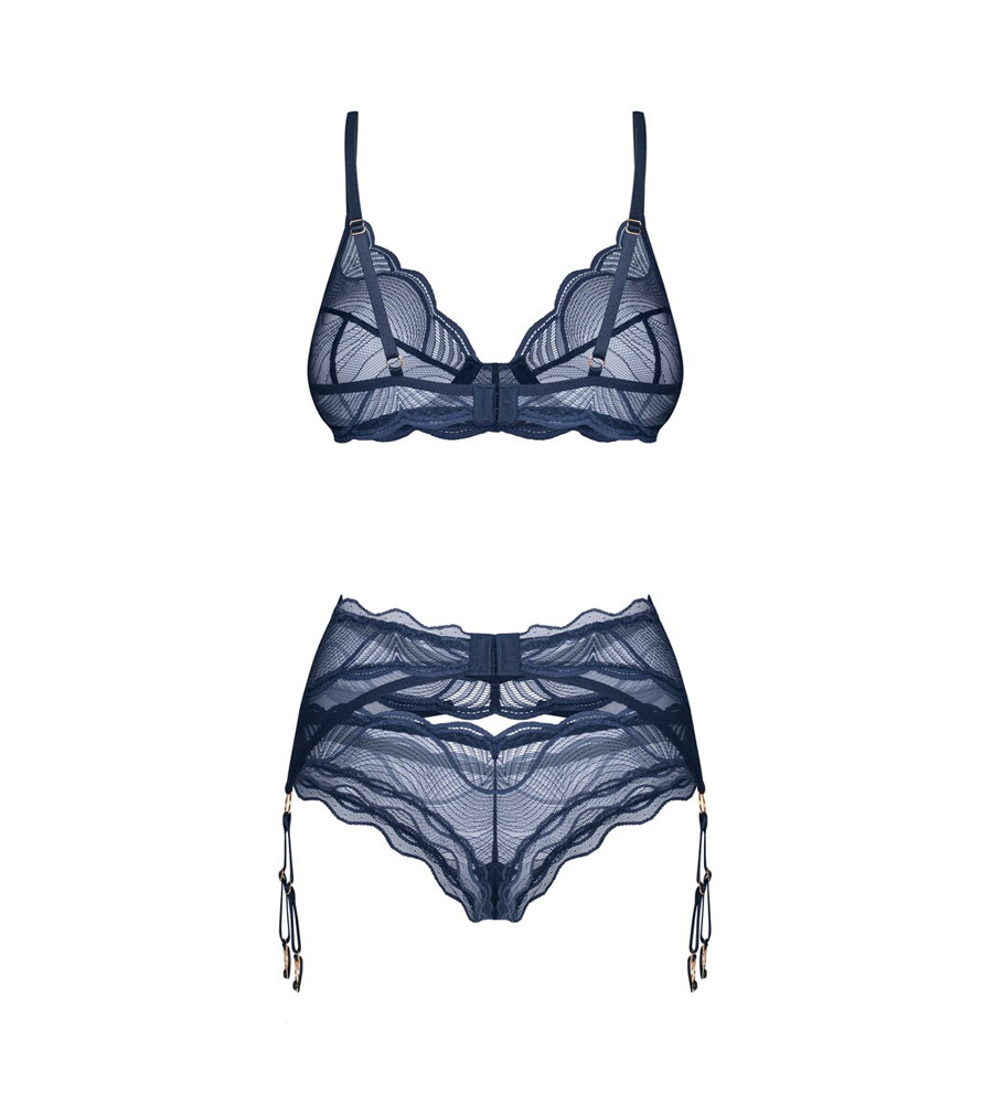 Obsessive Nightly Blue Suspender Set je set koji sadrži grudnjak, gaćice i haltere.