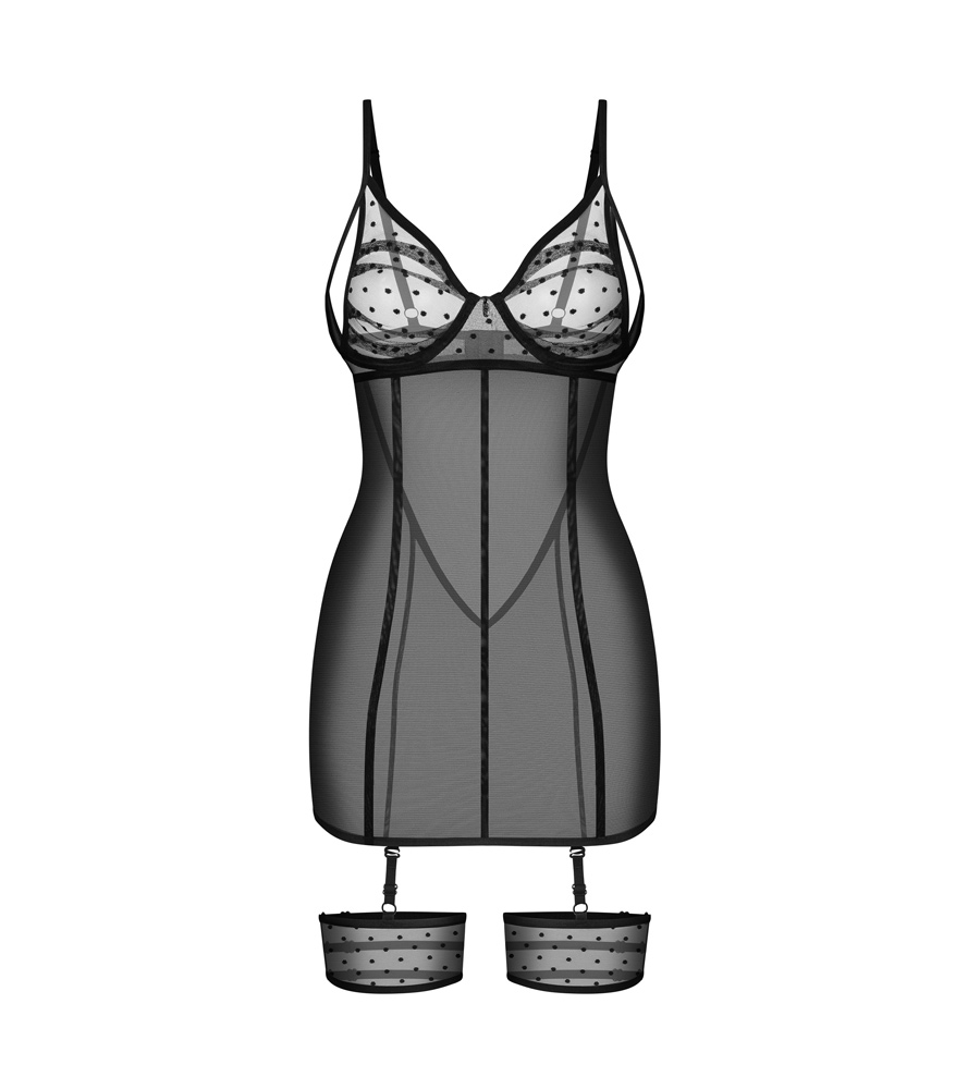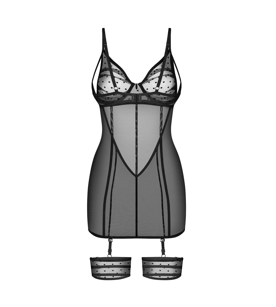 Obsessive Nuites Chemise je negliže s podvezicama. Ovaj bezvremenski komad dizajniran je da istakne svaku oblinu.