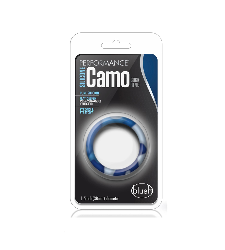 Performance Silicone Camo Cock Ring Blue je mekan, rastezljiv prsten izrađen za maksimalnu udobnost.