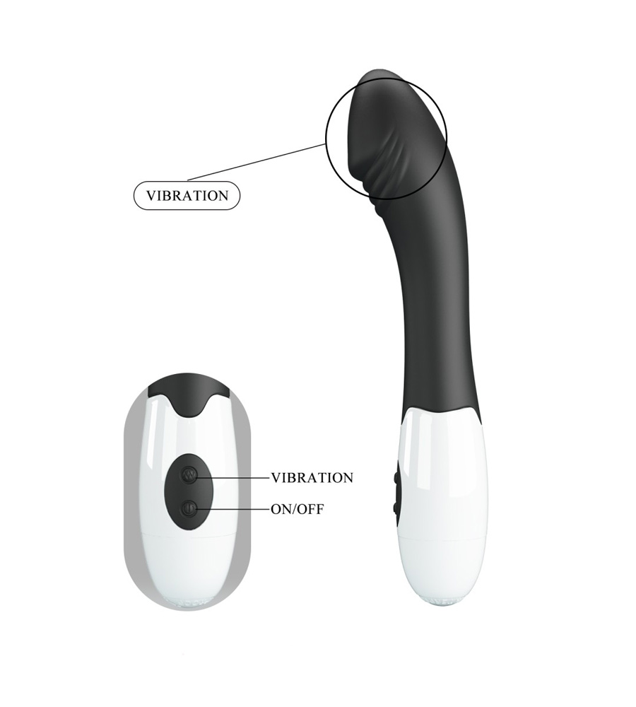 Njegova zakrivljenost omogućuje preciznu stimulaciju G-točke. Vrh vibratora je realističnog oblika glavića.
