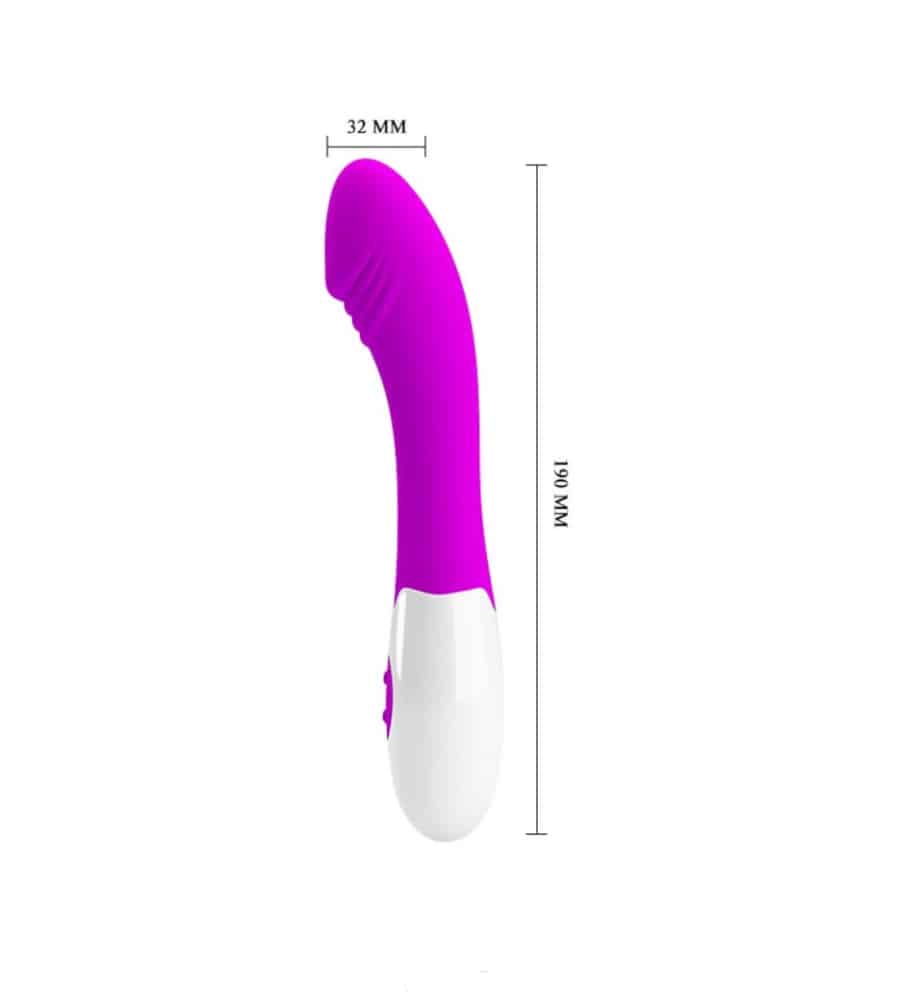 Njegova zakrivljenost omogućuje preciznu stimulaciju G-točke. Vrh vibratora je realističnog oblika glavića.
