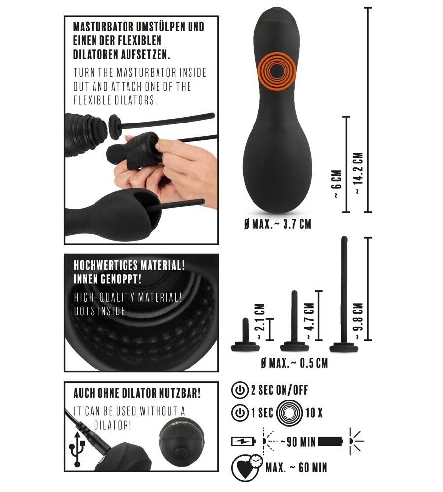3 fleksibilna dilatatora različitih veličina mogu se umetnuti ili zamijeniti za dodatnu stimulaciju uretre ako i kada je potrebno.