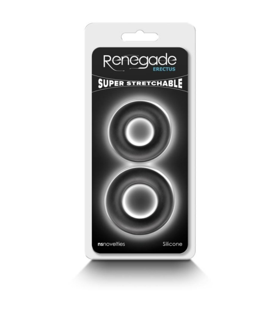 Renegade Erectus Black je set od dva izrazito visokokvalitetna penis prstena od mekog i ugodnog silikona. Različite su veličina, a namijenjeni za maksimalni užitak Vas i Vašeg partnera/ice. Pogodni su za lubrikanate na bazi vode.