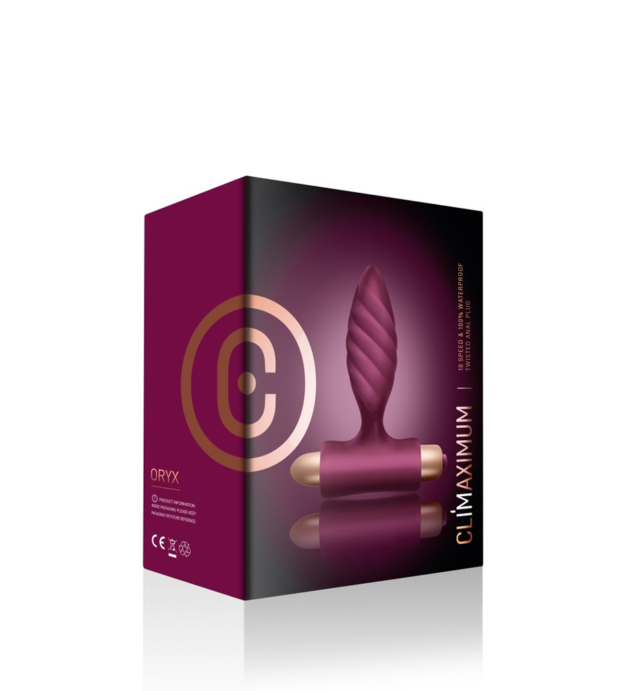 Rocks-Off Climaximum Oryx Burgundy je vibrirajući analni plug ljubičaste boje.