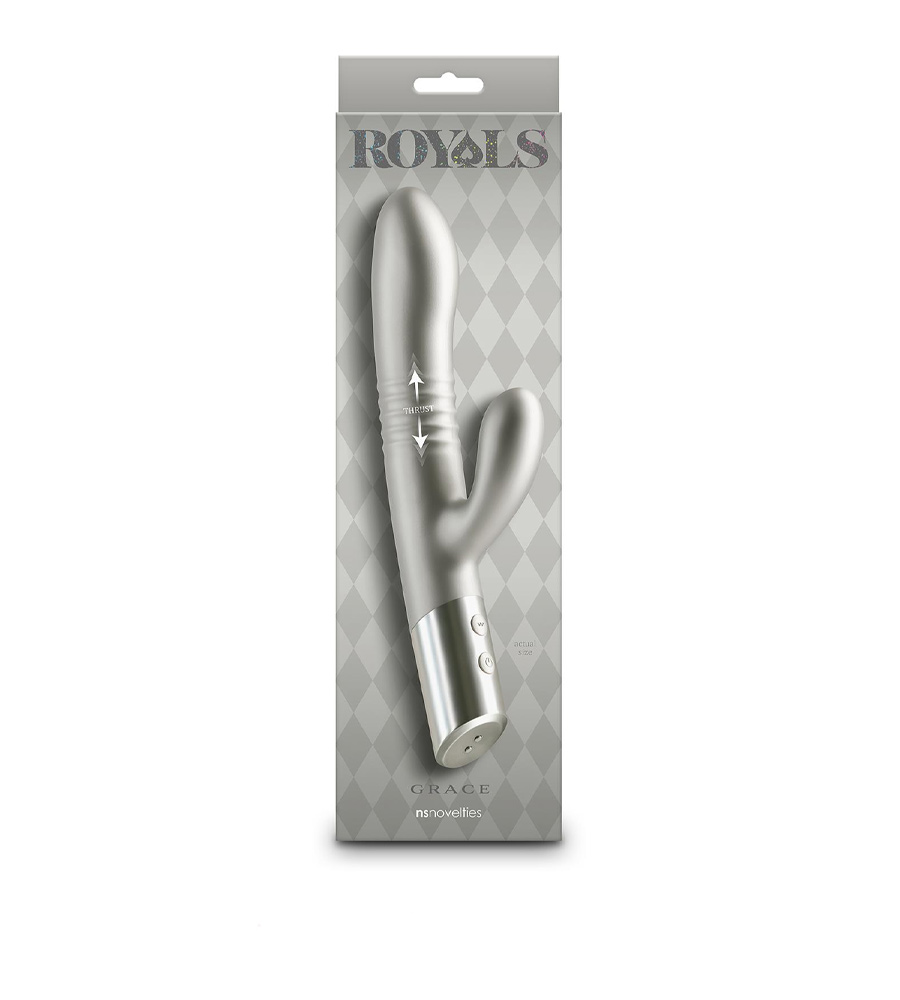 Royals Grace Metallic Champagne je silikonski rabbit vibrator, kraljevski elegantne srebrne boje.
