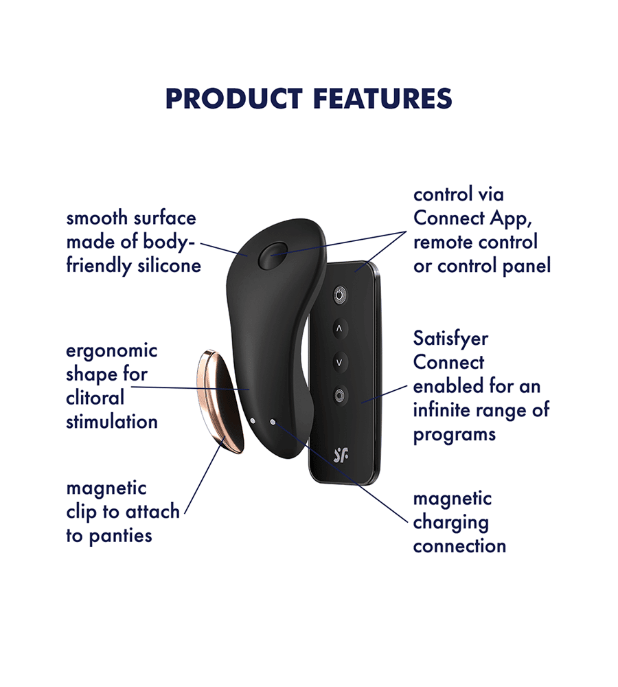 Vibratorom Satisfyer Little Secret može se upravljati i priloženim daljinskim upravljačem i preko besplatne aplikacije Satisfyer Connect App koja je dostupna i za Apple i za Android. Na taj način Little Secret možeš diskretno koristiti u svakodnevnici i predati kontrolu svojem dragom. S aplikacijom Satisfyer Connect App također možeš istražiti nove sfere zadovoljstva: Izradi vlastite programe vibracija na temelju zvukova u svojoj okolini ili svojeg omiljenog spiska pjesama.