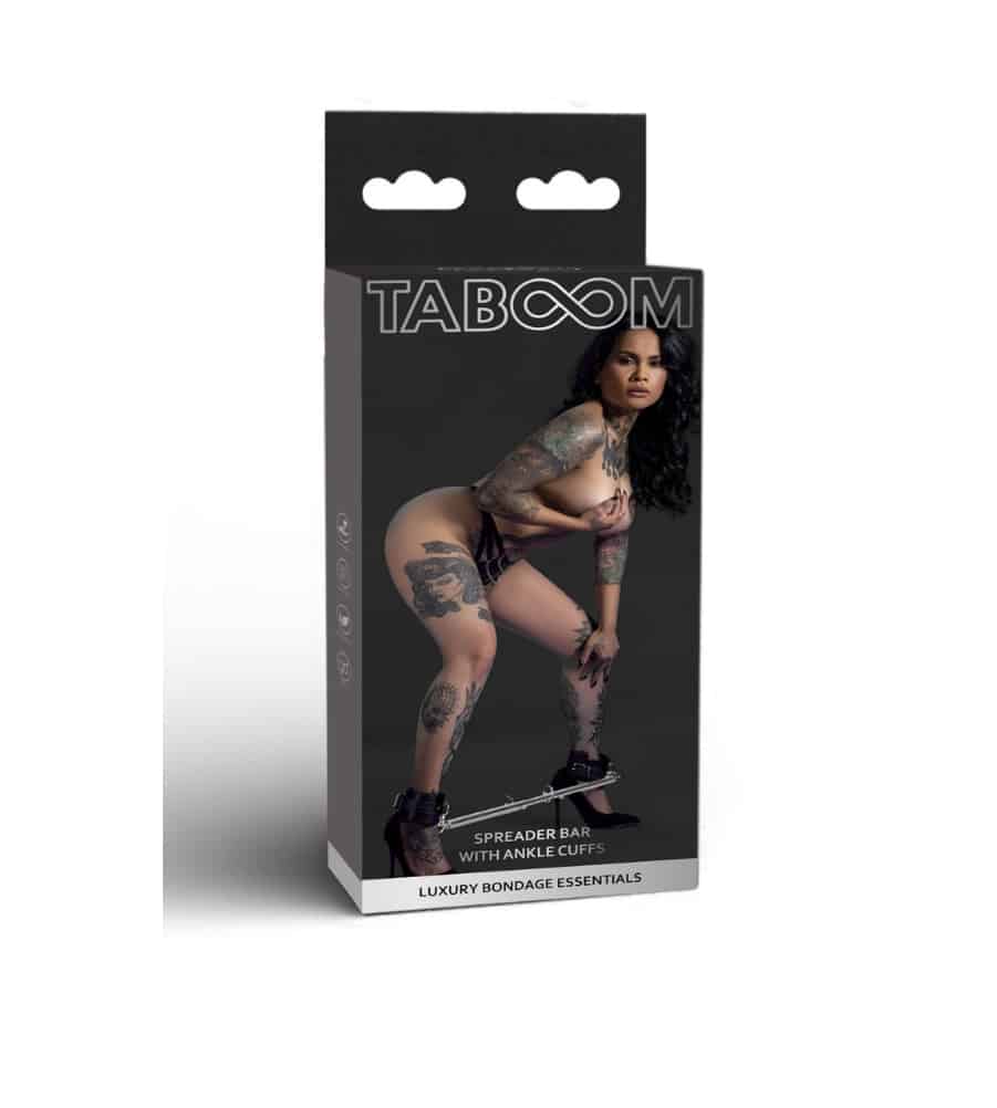 Otvorite noge pomoću Taboom Spreader Bar with Ankle Cuffs proširive šipke za širenje nogu s lisicama za gležnjeve, posebno izrađene za iskusne ljubitelje BDSM-a. Šipka za širenje opremljena je s 4 prstena za pričvršćivanje na priložene lisice za gležnjeve.