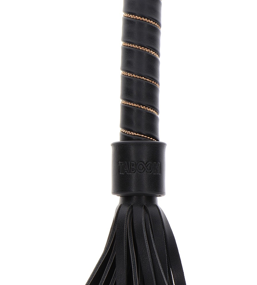 Taboom Studded Whip je bič s resicama, izrađen od umjetne kože crne boje sa zlatnim mini zakovicama i detaljima.
