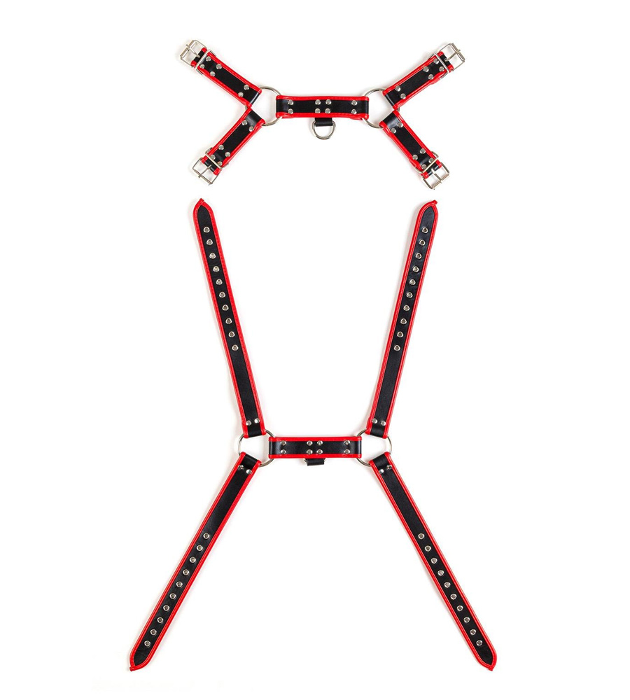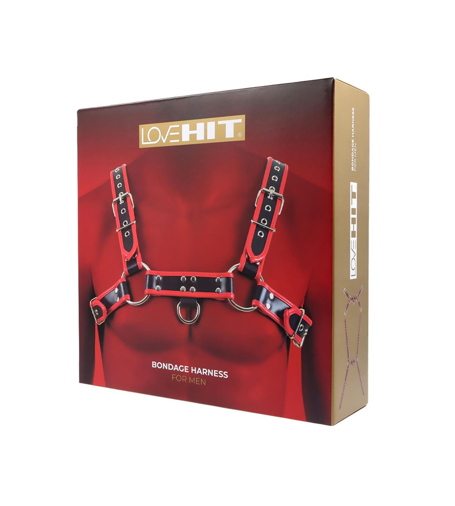 Virgite Man Bondage Body Harness Mod. 1 Black/Red je potpuno podesiv muški harness od veganske kože.