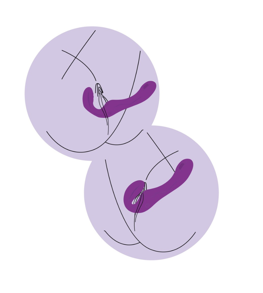 Kraći dio umeće se vaginalno, a zatim se u partnera može penetrirati dužim pulsirajućim vibratorom.
