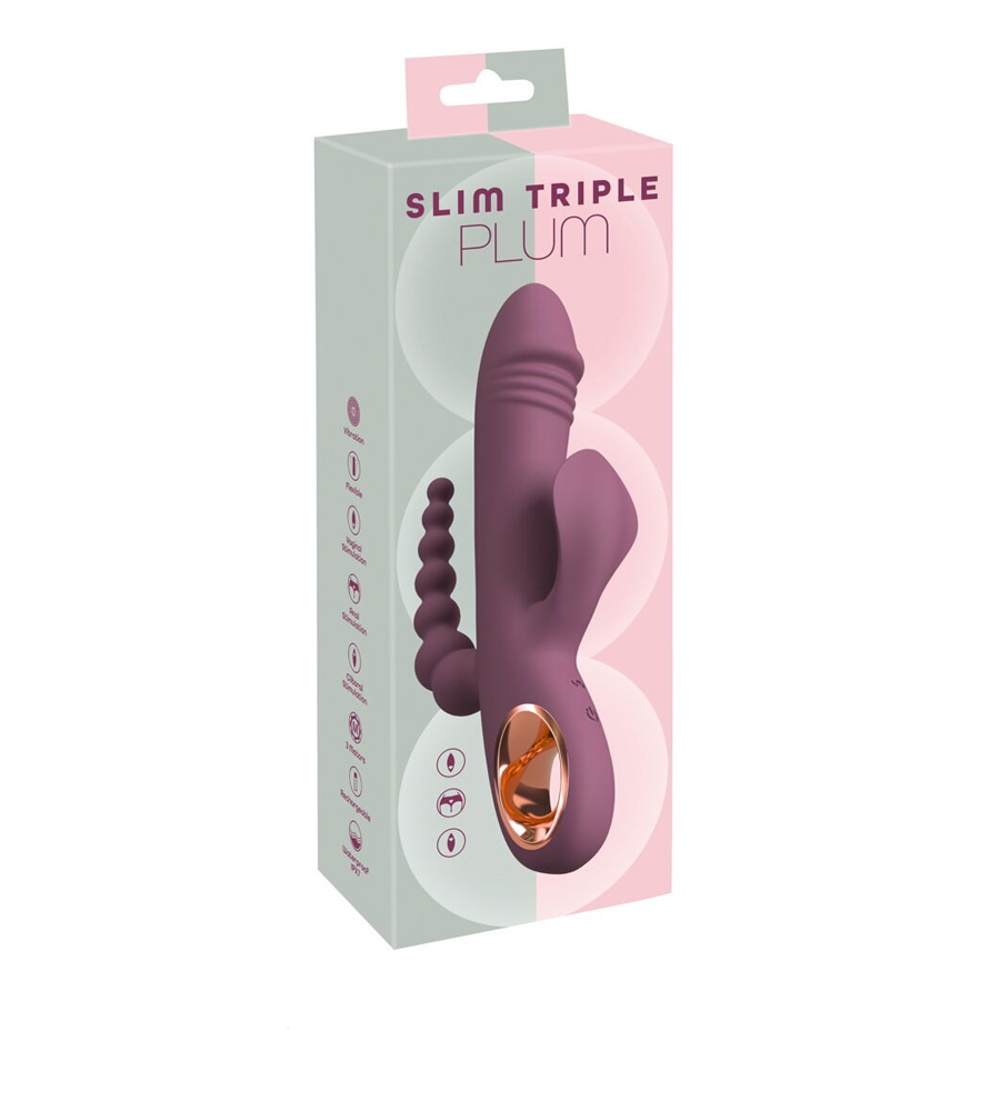 Elegantni i jednostavni za korištenje 3-u-1 vibrator, Slim Triple Plum brenda You2Toys, savršen je za trostruko zadovoljstvo: istovremena stimulacija vagine, klitorisa i analnog područja!