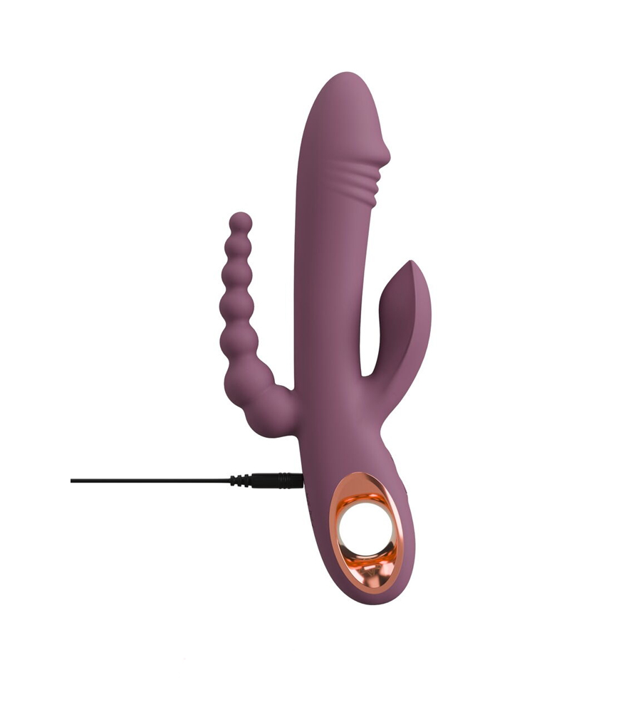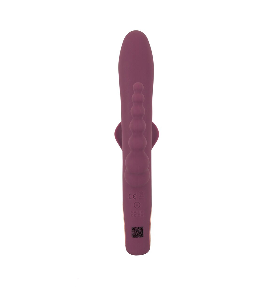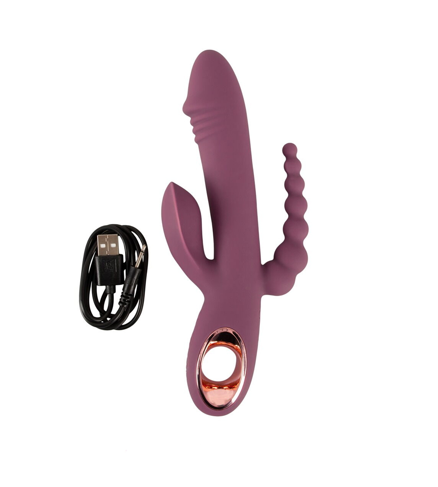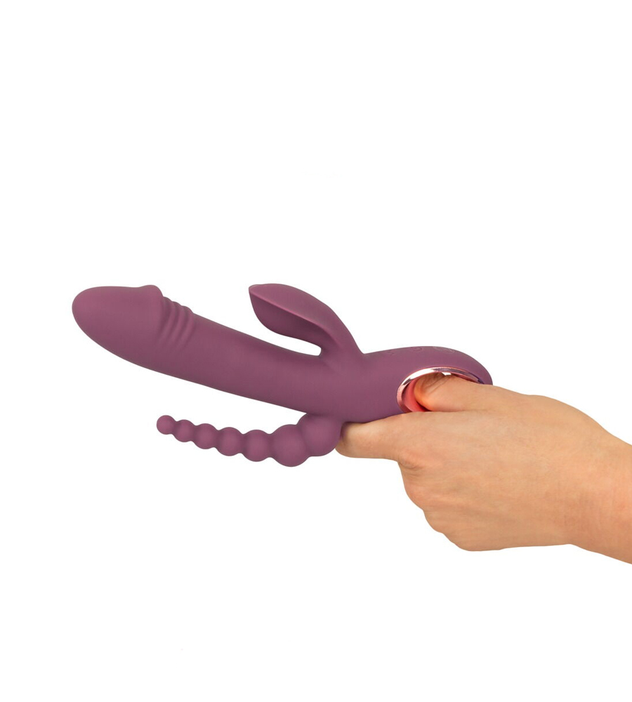 Ergonomski oblikovan, izrađen od baršunasto mekog silikona, lako se umeće i pruža iznimno ugodan osjećaj. Fleksibilan je, pa se savršeno prilagođava tijelu i njegovim pokretima tijekom igre. Nježno zakrivljen s teksturiranom glavicom pruža potpuno vaginalno zadovoljstvo i preciznu stimulaciju G-točke. Meki, zakrivljeni stimulator klitorisa cilja vanjsku erogenu zonu, dok fleksibilni analni stimulator ima završetak s kuglicama: počinje manjom kuglicom za lako umetanje, a zatim se kuglice povećavaju kako bi pružile pojačanu stimulaciju pri svakom pomaku. Kada se vibrator s tri kraka u potpunosti umetne, može se koristiti i bez upotrebe ruku – dovoljno je samo opustiti se i uživati!
